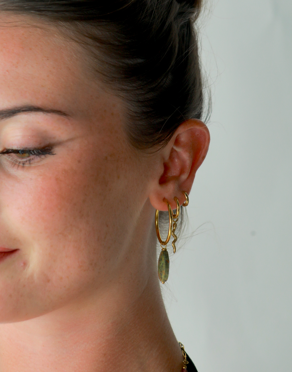 目に入ると落ち着くラピスラズリの色で常に癒されています♪フープも緩むことなく錆びつくこともなく常に身につけています!ありがとうございます😭