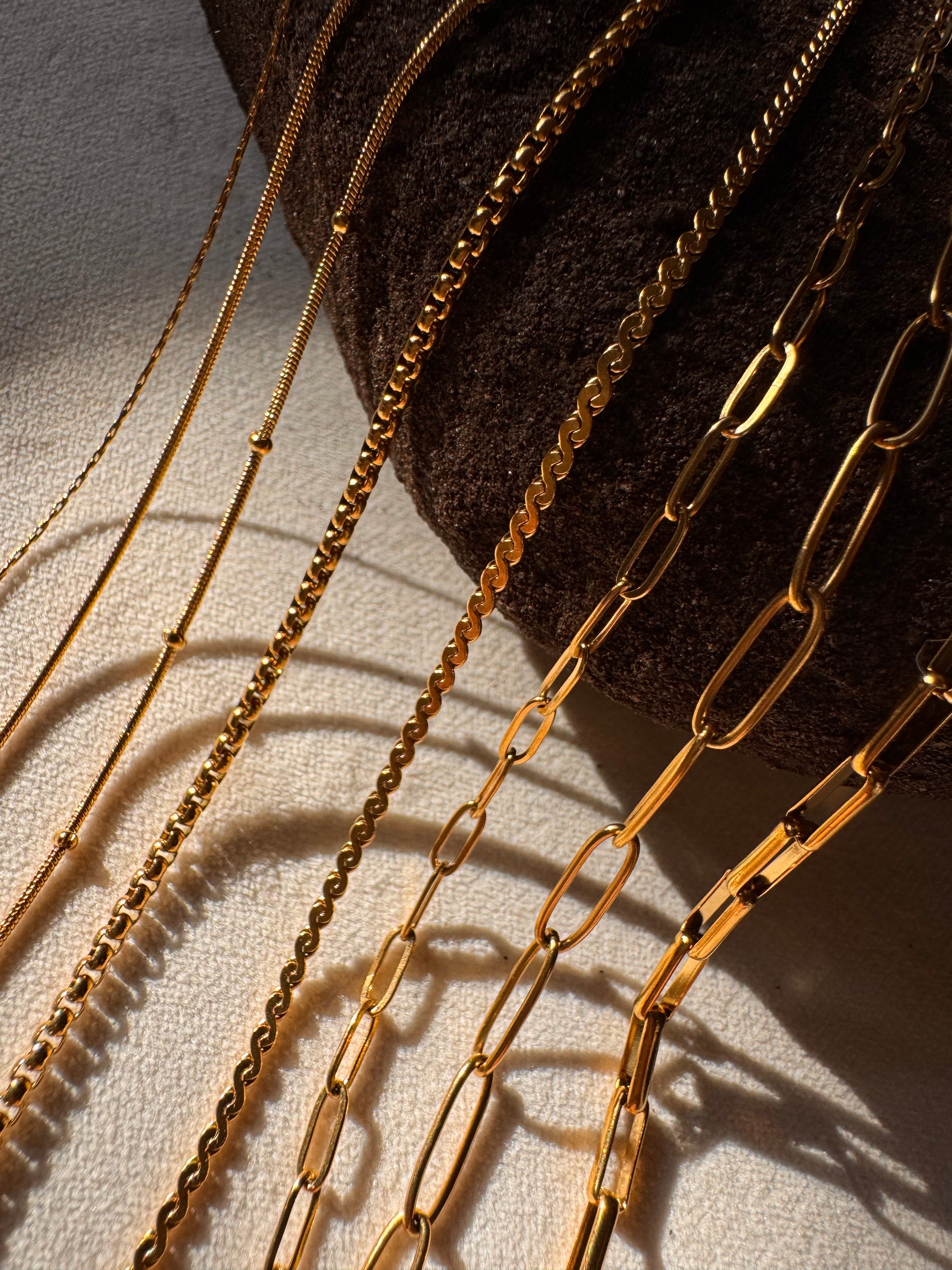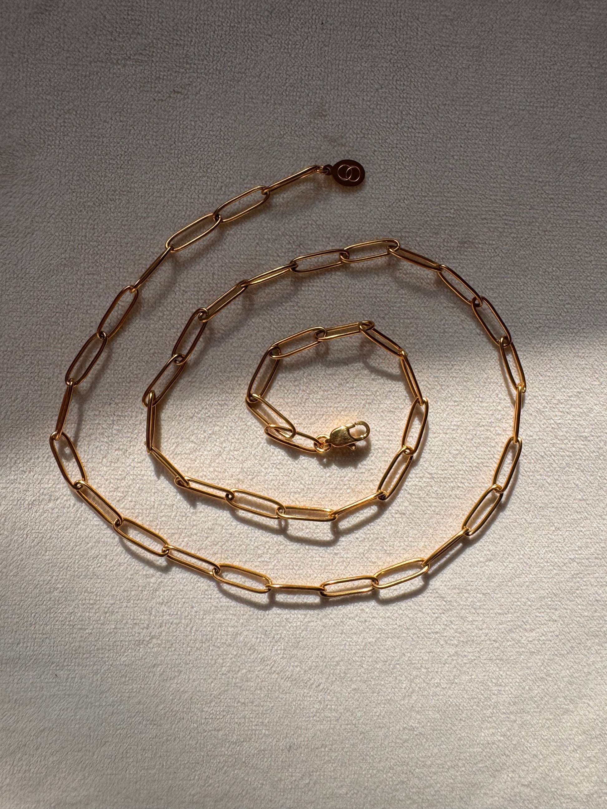 A classic round paperclip chain with smooth links and a slightly matte finish, giving it a timeless yet softly understated look. Made to order in your preferred length so it’s perfect for layering or wearing alone. If no request is made, the chain will be shipped at the standard 45cm length.